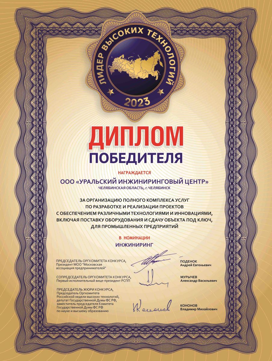 The Ural Engineering Center has been named one of the winners of the annual All-Russian "High Technology Leader" competition.