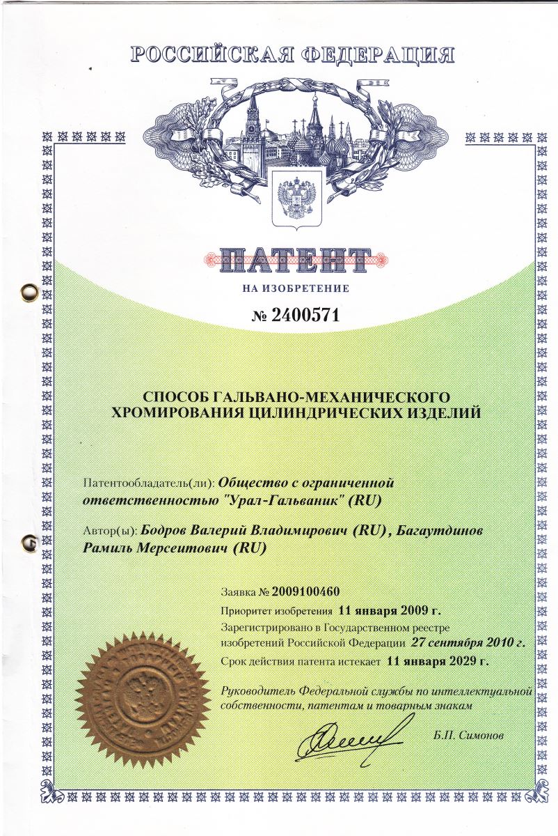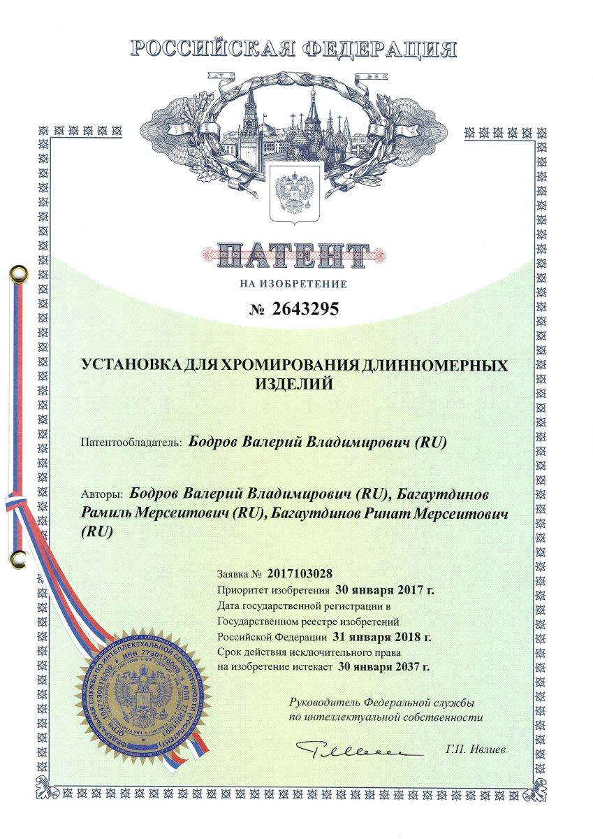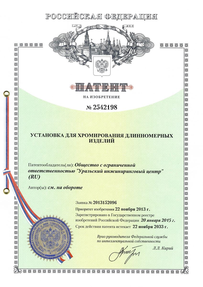 Currently, "UrIC" LLC is working on creating an industrial technology for applying chrome coating to the internal surfaces of rotating bodies (sleeves for the oil industry, sleeves of hydraulic cylinders).